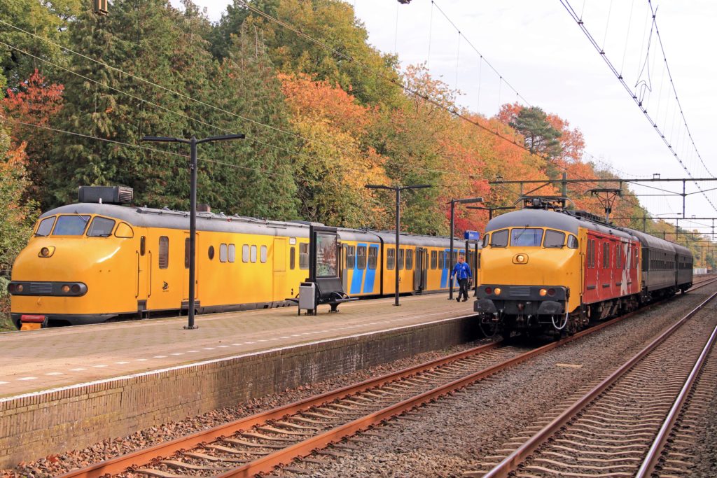 Wolfheze in herfstkleuren en de twee hoofdrolspelers aan het perron. Foto: Henk Dam.