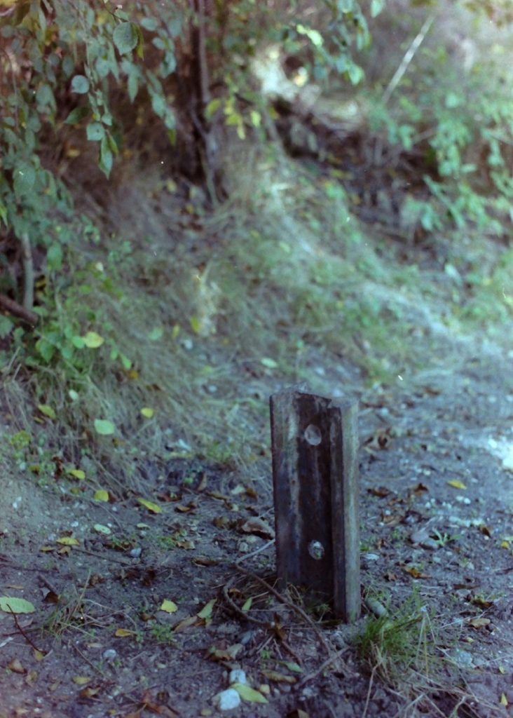 Hectometerpaal onder aan de Grebbeberg, 1986. Foto: Frank Hoogenboom.
