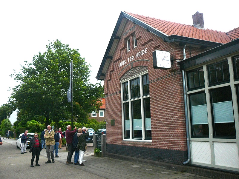 In Zeist reden we door de Slotlaan die nu heel wat drukker is dan de fraaie bomenlaan met enkele paardentrams uit ons boekje. Vanaf hier reden de trams uit Utrecht (normaalspoor) en Rhenen (kaapspoor) samen richting het station Zeist (NCS). De plek van dat station bezochten we in 2019 ook, maar toen als onderdeel van een excursie langs de spoorlijn vanuit Bilthoven. De tramlijn uit Utrecht eindigde hier bij een grote remise. De smalspoortrams vonden ook een onderkomen in deze remise , terwijl de smalspoorlijn zelf in 1914 naar Amersfoort was verlengd. Aanvankelijk met een derde rail in de spoorbaan tot Huis ter Heide, maar vanaf 1916 op een eigen baan naast de spoorlijn. Dat tracé volgde we een stukje tussen de Gandhilaan en de Bergweg. Het tracé was hier gelukkig vrij gebleven, omdat het te smal was om er huizen op te zetten. Hierna zetten we koers naar de voormalige treinhalte Huis ter Heide, nu een klein vergaderoord. Kort voor deze halte had de tram een eigen perron en liep daarna verder langs de Amersfoortseweg. Een prachtige foto in het Speurboekje gaf hier een beeld van.