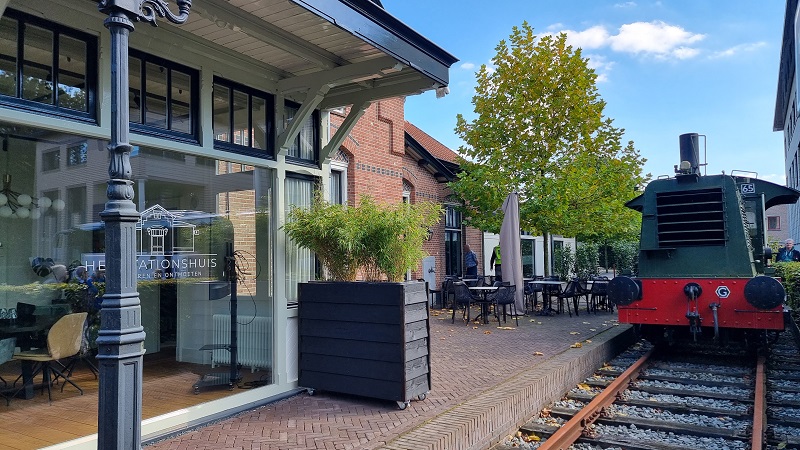 In de kom van Rhenen stapten we fluks weer in de bus richting Elst en redenlangs de voormalige halte bij de oude school aldaar naar Amerongen waar we de lunch gebruikten in hotel-restaurant Buitenlust tegenover de voormalige halte. Een enkeling nam daarna ook nog even slijterij de Oude Tram waar, dichtbij de trambaan, maar de rest van het gezelschap was voor de deur van het restaurant in de bus gestapt die onze chauffeur behendig door de smalle straatjes in Amerongen manoeuvreerde wat vooral met de grotere bus op 5 oktober een bijzondere prestatie was!