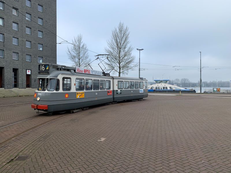 De 586 op het Azartplein met de pont naar Amsterdam-Noord. Foto: Ronald Bokhove.