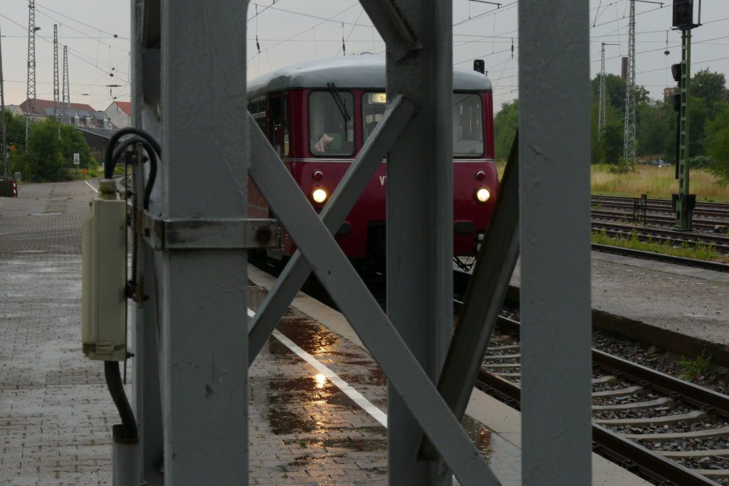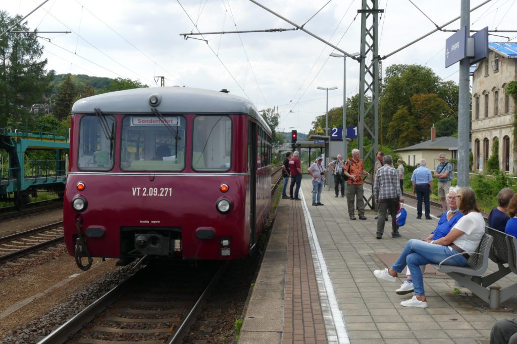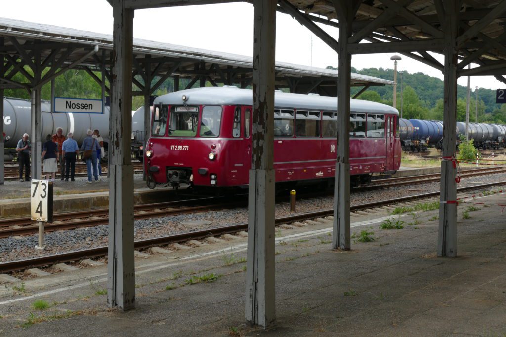 De rit met de railbus wordt tot Zeithain voortgezet over een lijn die nu alleen nog goederenvervoer kent en dan verder door naar Cossebaude, niet ver van Dresden. Na kopmaken en een fotostop vervolgen we de rit via Meiβen Triebischtal en Nossen naar Döbeln Hbf, deels ook weer over een goederentraject. De fotostop in Roβwein vormt door de klassieke seinbrug een hoogtepunt; de noodremming kort voor Döbeln vanwege door vandalen op de rails gelegde metalen voorwerpen is dan een dieptepunt, maar blijkt gelukkig slechts tot geringe schade te hebben geleid. Intussen barst in Döbeln een verfrissende regenbui los voordat de rit verder met fotostops in Klosterbuch, Naunhof en Beucha terug naar Leipzig voert, waar we stipt om 19.40 uur arriveren en ieder zelf de stad in kan om iets te eten.