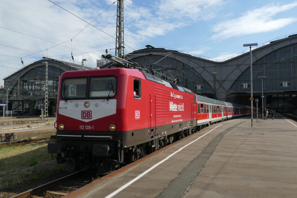 De zondagse trein uit Fürth wordt op Leipzig Hbf afgerangeerd, 31 juli 2022. Foto: Paul Muré.