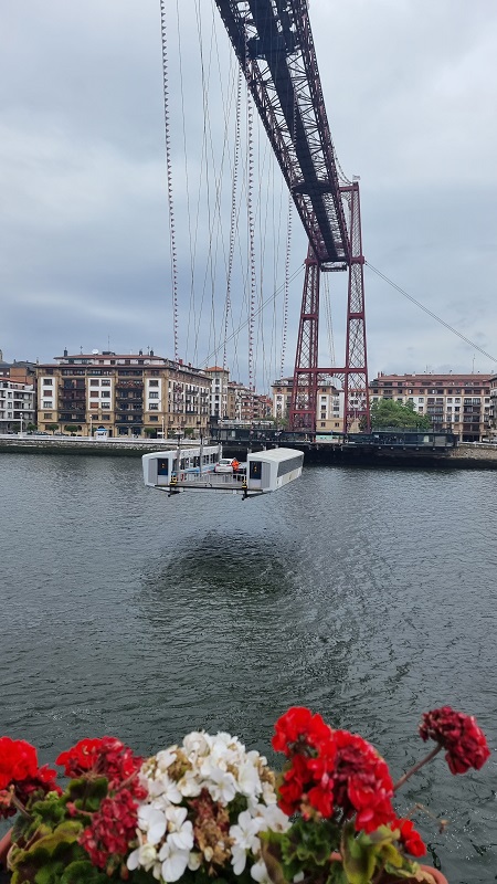 Het zwevende veer Puente Colgante over de rivier Nervión bij Bilbao, 22 mei 2023. Foto: Paul Nienhuis.,
