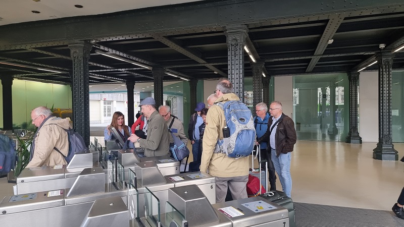 Station Bilbao-Concordia waar een behulpzame Renfe-medewerkster de groep helpt bij de passage van de toegangspoortjes, 17 mei 2023. Foto: Paul Nienhuis.