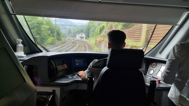 Op dag 5 verlaten we Vitoria-Gasteiz pas na een gezamenlijke maaltijd om 14.30 uur met een regionale trein, eerst naar het belangrijke spoorwegknooppunt Miranda de Ebro. Aldaar is zo’n anderhalf uur de tijd om onder de overkapping van het brede middenperron het spoorse gebeuren te bekijken. Er komen weliswaar niet heel veel treinen langs, maar er is genoeg te zien. Wie dat wil kan op het voorplein een terrasje opzoeken. Uiteindelijk blijkt het al die tijd verderop staande en deels onder de graffiti gespoten tweewagenstel de intercity naar Bilbao te zijn, waarmee we in een kleine twee uur een prachtige rit dwars door het Cantabrisch gebergte maken. Ook dit traject doet soms niet onder voor bekende berglijnen in de Alpen!