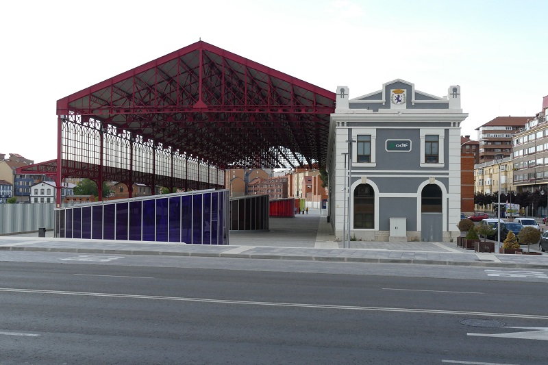 Delen van het oude station van León overkappen bovengronds de toegang tot het huidige ondergrondse station. Alleen achter de fotograaf liggen nog enkele bovengrondse kopsporen, 22 mei 2023. Foto: Paul Muré.