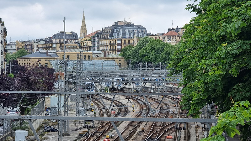 Station Amara-Donostia: het meterspoorknooppunt van Euskotren in San Sebastián, 15 mei 2023. Foto: Paul Nienhuis.