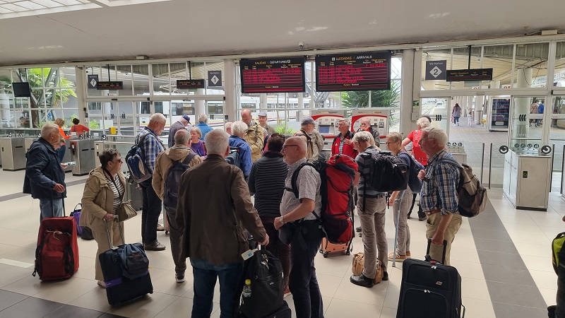 Groep A staat in het FEVE-station van Santander te wachten op vertrek naar Gijón, 18 mei 2023. Foto: Paul Nienhuis.