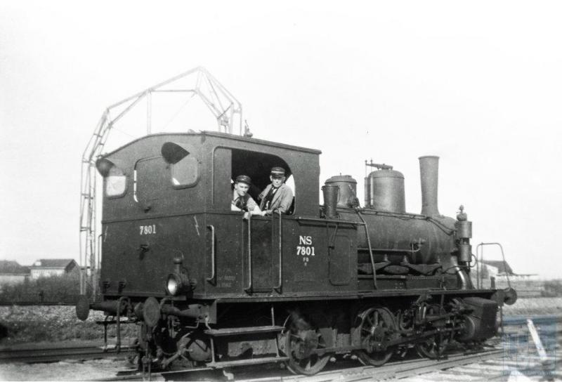 Zes sikken kwamen ongeschonden uit de oorlog: veel te weinig natuurlijk. Aan de bestelling van nieuwe rangeerlocs zat een behoorlijke levertijd, want veel fabrikanten kampten ook nog met de naweeën van de oorlog. Daarom kocht NS in Zwitserland een vijftal stoomlocomotieven van de SBB, die bij NS genummerd werden van 7801 tot en met 7805. Op de foto bij Rotterdam DP zien we de 7801, die bij de SBB het nummer 8424 droeg. Stoomlocomotieven voor rangeerwerk waren echter al uit de tijd, zodat NS zodra het kon dit vijftal aan de kant zette: al in 1948. (foto 509.036; 19-4-1946)