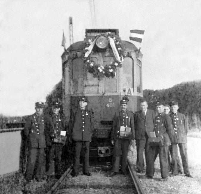 Eindelijk is het dan zo ver: de trams gaan weer rijden! Dat geldt ook voor de NZH. Hier poseert het personeel op de Sandtlaan te Rijnsburg voor de allereerste tram die op het traject Leiden-Noordwijk in dienst kwam. We zien het stuurstandrijtuig B 401. (foto 130.190; 25-6-1945)