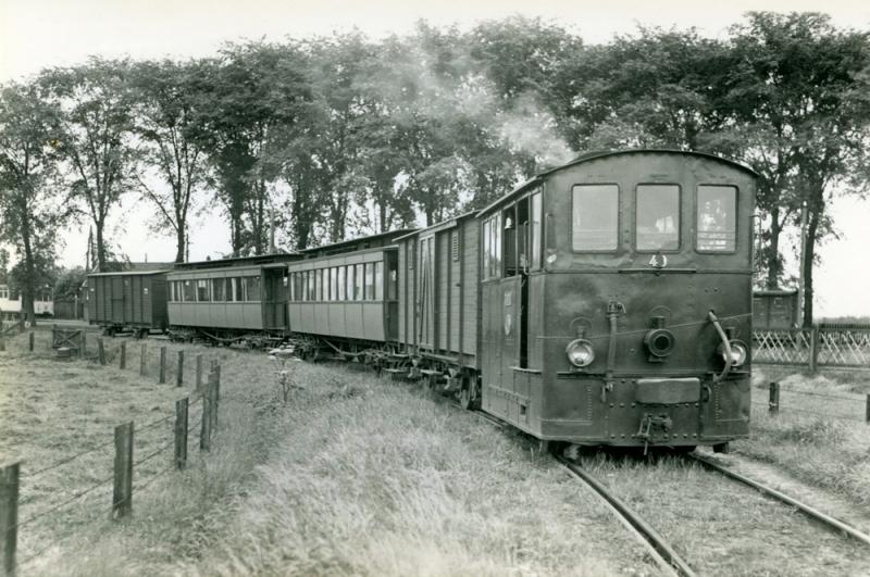 De paardentram was niet opgewassen tegen de enorme concurrentie van de autobussen. Daarom wilde de NTM de lijn al midden jaren twintig sluiten. De Provincie Friesland verbood dit. Uiteindelijk stemde ook de gemeente Dantumadeel in met de komst van stoomtrams en motorwagens. De lijn werd verzwaard en op 15 mei 1926 feestelijk in gebruik genomen. Hier een stoomtram met loc 40 in augustus 1936 te Veenwouden met een tram naar Dokkum. Foto: J.J.B. Vellekoop.
