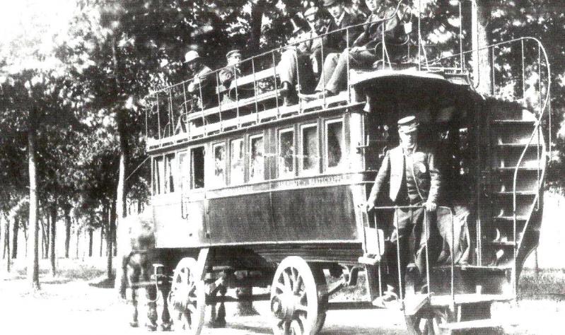Delft kende al vroeg een paardentram. En nog wel een heel bijzondere: de railroader die zowel op rails als op straat kon rijden. Rond het midden van de negentiende eeuw was ir. Cornelis Soetens actief bezig met het bemachtigen van concessies voor het aanleggen van paardentramlijnen in de omgeving van Den Haag. De meeste pogingen strandden, maar de concessie voor een verbinding van Den Haag via Rijswijk naar Delft werd in 1864 verleend. Geldschieters voor de Algemeene Nederlandsche Railroute Maatschappij (ANRM) kwamen uit Frankrijk. Op 24 juni 1866 vond de officiële openingsrit plaats: de lijn liep van het Huygensplein in Den Haag naar het Kalverbosch te Delft. De spoorwijdte bedroeg 1445 mm. De voertuigen waren van Frans fabricaat. Op de Hoornbrug in Rijswijk en bij de gelijkvloerse kruising met de trein van Den Haag naar Leiden op de Rijswijkscheweg lagen geen rails. Aanvankelijk was de lijn een groot succes maar later kwam de ANRM in financiële problemen en ging zelfs failliet. Eind 1874 viel het doek. Op de foto een van de rijtuigen bij het Delftse eindpunt Kalverbosch circa 1870. (Gemeentelijke Archiefdienst Delft)