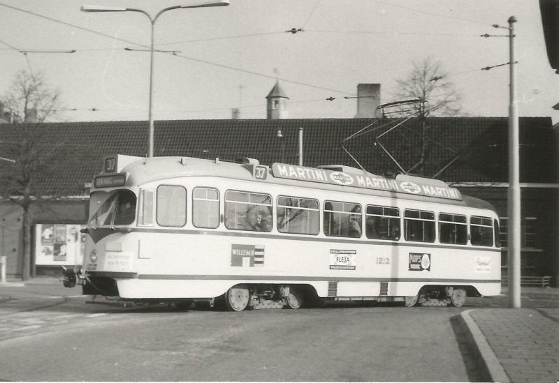 Toen vanaf 9 januari 1965 PCC′s ook op lijn 37 gingen rijden, ontstond er een probleem: op het eindpunt aan de Westvest bevindt zich geen keerlus. En dat vormt voor eenrichtingwagens zoals alle PCC′s een groot probleem. Als oplossing werd een keerdriehoek gekozen voor het NS-station, vlakbij het eindpunt. De tram rijdt vooruit de keerlus op en achteruit terug naar het eindpunt. PCC′s beschikken namelijk over een stuurinrichting aan de achterzijde die achteruit rijden mogelijk maakt. Nieuwsgierig geworden hoe dit er allemaal uit zou zien, toog de samensteller van deze expositie enkele weken later naar Delft en fotografeerde het emr. 1212 achteruitrijdend op de keerdriehoek de Westvest op. 20 februari 1965. (NVBS-fotonummer 1203.082).