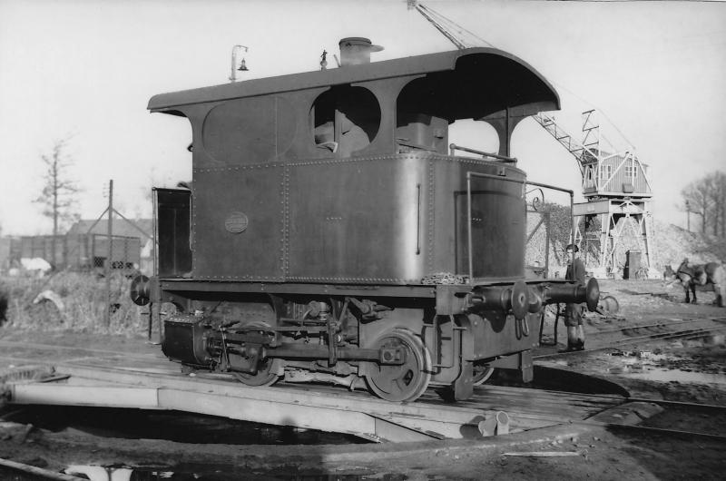 Op fabrieksspoor reden materieeltypes die elders nauwelijks of niet te zien waren. Vuurloze stoomlocomotieven werden al genoemd. Bijzonder waren ook de locs met verticale ketel, die tientallen jaren gebouwd werden door het Belgische Cockerill. Een groot voordeel was dat deze ketels van het Field type in een kwartier waren opgestookt, terwijl dat bij een gewone ketel minstens 3 uur duurde. Ook konden deze Cockerills zeer krappe bogen doorlopen. De foto toont een Cockerill op de draaischijf van de CSM suikerfabriek in Sas van Gent tijdens de bietencampagne in 1949. De Cockerill van buurman Zuidchemie is nog steeds in dienst en wel bij de Museum Buurt Spoorweg in Haaksbergen. (Foto Jan Voerman)