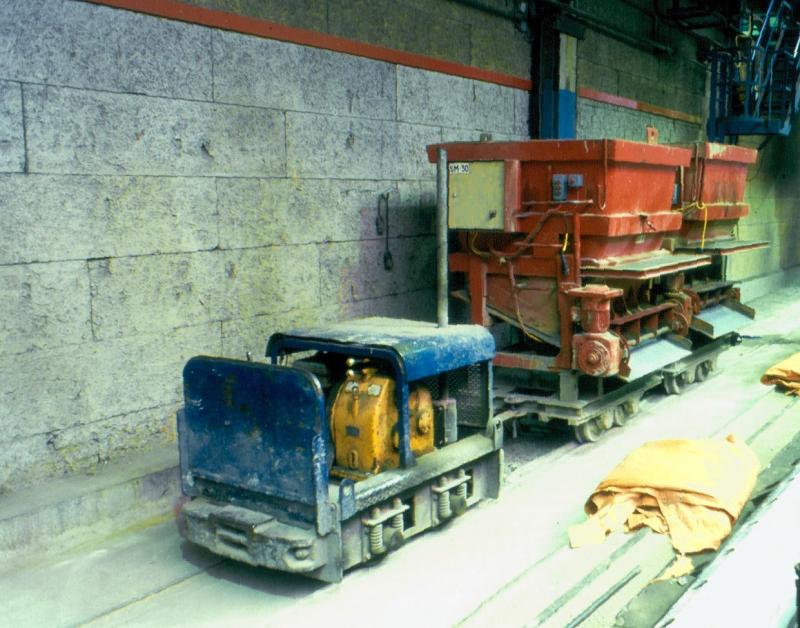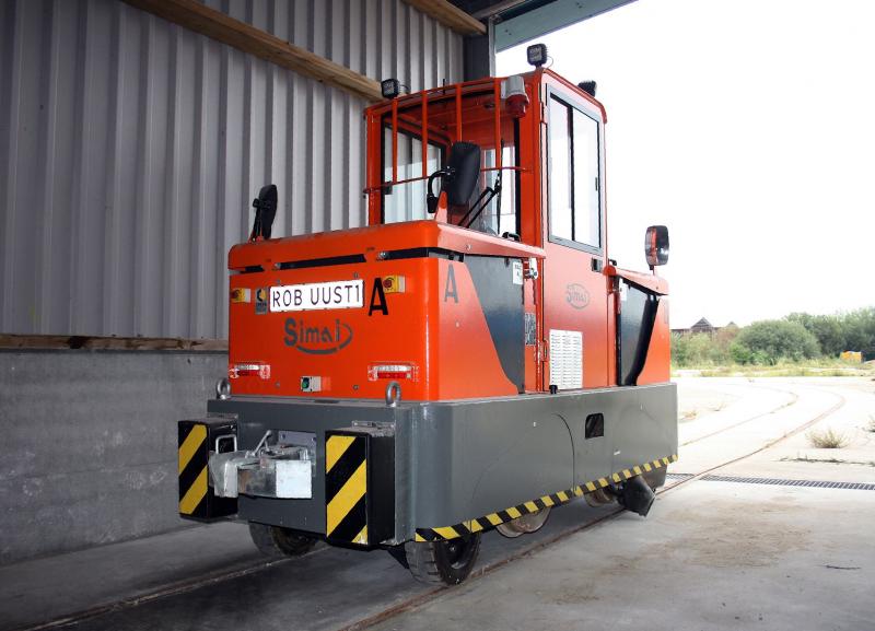 Met het industrieel smalspoor ging het bergafwaarts, maar op de valreep verscheen ook daar een rail-wegvoertuig. De fabriek van betonvloeren Dycore (voorheen Heembeton) in het Overijsselse Hasselt wenste een accuvoertuig dat treinen zonder rookoverlast uit de hallen kon trekken. Het 900 mm spoor lag bijna overal in beton, dus een rail-wegvoertuig zou omlopen bijna overal mogelijk maken. Het Italiaanse Simai leverde na jaren een uniek voertuig dat op 10 september 2014 in afwachting is van een proces, terwijl de fabriek er omheen wordt afgebroken. Dycore sloot de fabriek in Hasselt namelijk per 1 april 2013. Het kwam daarom goed uit dat het voertuig volgens Dycore niet aan de eisen voldeed. Dycore weigerde het voertuig af te nemen. (foto Henk Kolkman)