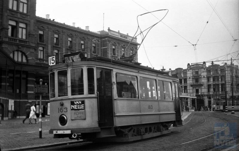 De nieuwe motorwagens van de serie 800 vielen goed in de smaak bij personeel en publiek dus toen de HTM het wagenpark wilde moderniseren, dacht zij aan eenzelfde soort rijtuigen. Een slim directielid stelde voor de oude drieramers te verbouwen à la serie 800, dat zou veel goedkoper zijn dan nieuwbouw. Zo gezegd zo gedaan; verschillende fabrikanten hebben rond 1930 de oude drieramers omgebouwd tot een nieuwe serie die ‘Ombouwers’ ging heten. Door de aankomende crisis zijn niet alle 148 wagens aan de beurt gekomen maar ‘slechts’ 81. Op de foto staat een van hen, de 54 op het eindpunt Appelstraat van lijn 5. Het is 28 juli 1946 en de fotograaf….J.A. Bonthuis. (NVBS-fotonummer 109.056). In deze tijd, zo rond 1930, kon men alle hiervoor genoemde materieeltypes (nog) op de rails aantreffen, met uitzondering van de accutrams. Wat een pluriformiteit! En dat is eigenlijk zo gebleven tot de komst van de PCC’s na de oorlog. Er werden wel series terzijde gesteld, vooral de oude paardentrams, maar zoals we hierna zullen zien kwamen er ook nog nieuwe trams bij.