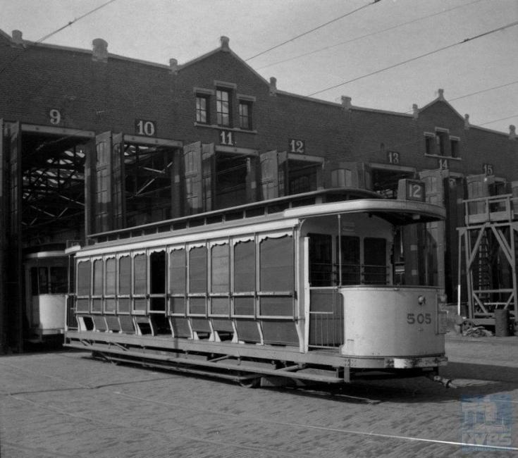 Natuurlijk waren de open rijtuigen in de zomer zeer geliefd bij badgasten. Op de lijnen naar Scheveningen waren ze dan ook veelvuldig te vinden. Maar veel passagierscapaciteit hadden ze niet. Daarom besloot de HTM 27stuks veel grotere bij Allan en Werkspoor te bestellen. Ook dit is een plaatje uit oorlogstijd, waarin ook in de winter open rijtuigen dienst deden. Veel materieel was namelijk gevorderd en naar Duitsland afgevoerd. Deze foto is op 26 maart 1944 genomen: om enige bescherming tegen de kou te bieden werden de schermen neergelaten maar een middeninstap vrijgehouden. De 505 staat op het terrein van de remise Lijsterbesstraat. Grote kans als u deze zomer een weekend in Den Haag bent, dat u de 505 tegenkomt: hij is namelijk als museumrijtuig bewaard gebleven. Foto: J.A. Bonthuis. (NVBS-fotonummer 109.100). Te zelfder tijd heeft Werkspoor nog een kleiner type soortgelijke open wagens geleverd, die in de beginjaren als ‘convertibles’ zijn ingezet: ’s winters werden zij gesloten gemaakt. In de oorlogsjaren en daarna bleven zij ook ’s zomers als gesloten wagen op de baan.