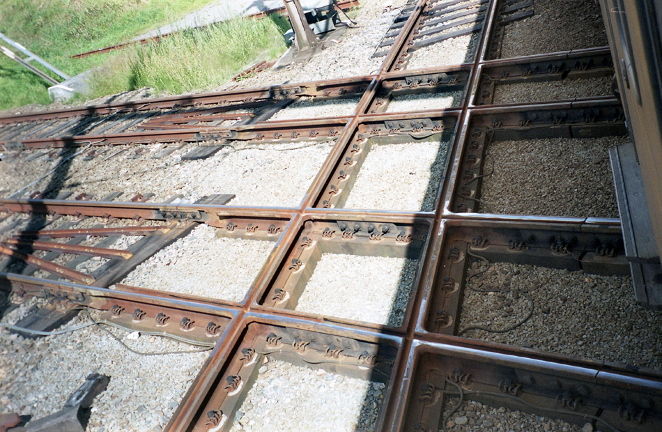 Letterlijk en figuurlijk vakwerk, de constructie van de spoorkruising. Naast het spoor liggen een paar reservedelen. Vanwege de snelle slijtage moesten regelmatig delen van de kruising worden vervangen.