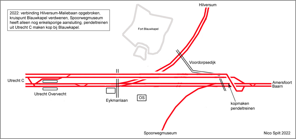 Het Spoorwegmuseum is sindsdien alleen nog per trein bereikbaar vanaf Blauwkapel. Het treinverkeer is beperkt tot de pendeltreinen naar het museum en af en toe een overbrengingsrit van museummaterieel. Daar heb je geen uitgebreide wisselverbindingen en dure bovenleidingconstructies voor nodig. Vandaar dat in mei 2022 een grote sanering is begonnen. Ook eerder zijn overigens al sporen en wissels buiten dienst gegaan.