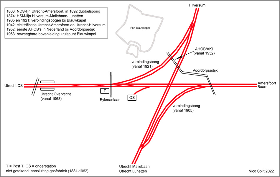 Op de tekeningen bij dit artikel kun je de ontwikkelingen sinds 1874 volgen. Op de laatste tekening zie je de uiteindelijke situatie, nadat alle overbodige sporen zijn verwijderd. Het lijkt logisch om de verbinding naar het Spoorwegmuseum andersom te leggen, richting Overvecht, maar hier liggen volkstuintjes in de weg en praktische bezwaren.