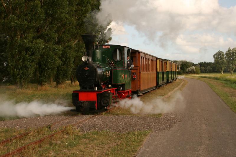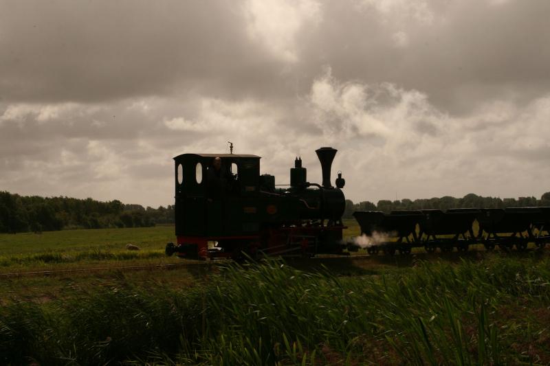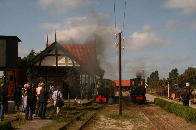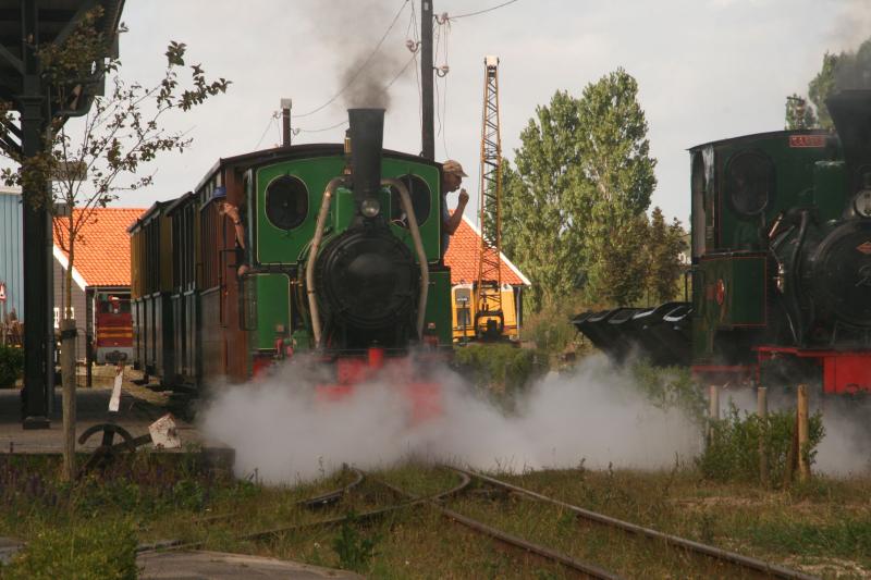 31 augustus 2013. Twee stoomlocs zijn op de open dag continu in bedrijf. Ze rijden solo of achter elkaar een (driekwart) rondje om het Valkenburgse Meer, lopen aan het eindpunt om en keren terug, dan wel met vier rijtuigen aan de haak, dan wel met enkele kiepkarretjes.