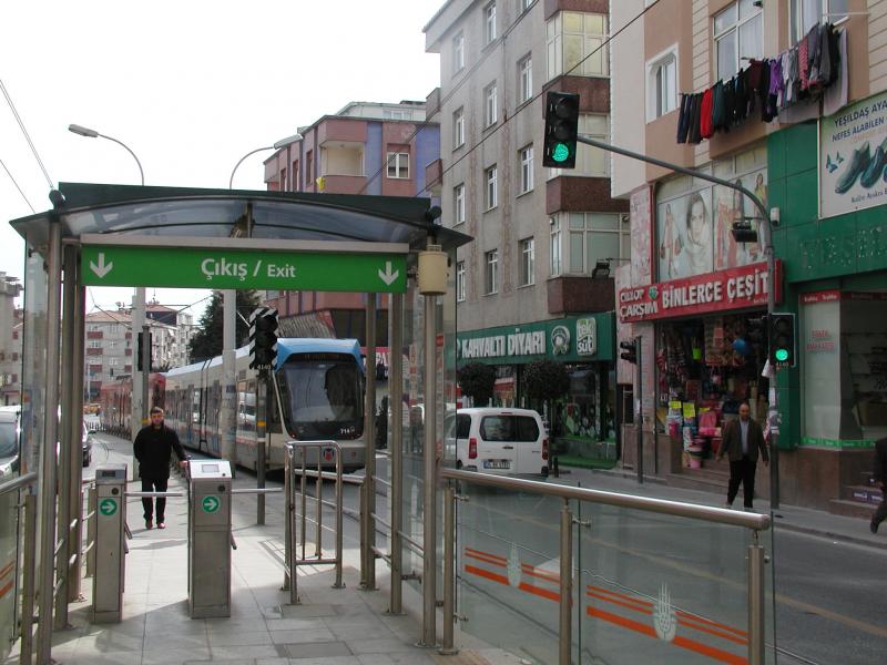 Bij de muur die de Romeinse stad Constantinopel omgaf bevindt zich de halte Topkapi, waar overgestapt kan worden op lijn T4. Alle haltes, ook die van de lijn T1, hebben poortjes waar je met een electronische kaart moet inchecken; aan uitchecken doet men hier niet. Tramlijn T4 is eigenlijk meer een bovengrondse metro-lijn (enkele haltes zijn ondergronds), met overal hekken erlangs, die straten waar de lijn doorheen gaat, geheel in tweeëen delen. Het mateerieel dat er rijdt lijkt ook erg op dat van de echte metro.