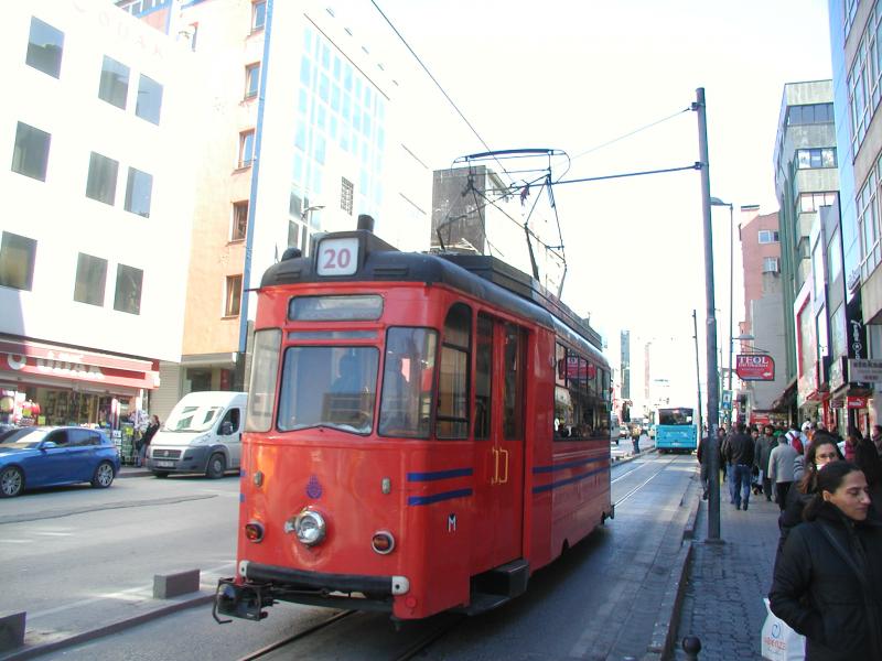 Dit tramlijntje is typisch een kort, toeristisch lijntje, enkelspoor door een drukke winkelstraat. Het tlijntje eindigt bij het Taksim-plein. Aardig is, dat ook etensstalletjes in de kleuren van de tram zijn geschilderd.