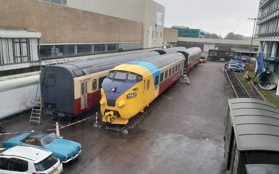 Blikvanger voor het museum: een koprijtuig van het TEE-treinstel dat in augustus 2021 naar Nieuw-Vennep is overgebracht. Inmiddels is dat rijtuig uiterlijk weer in oude glorie hersteld.