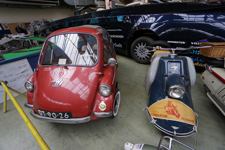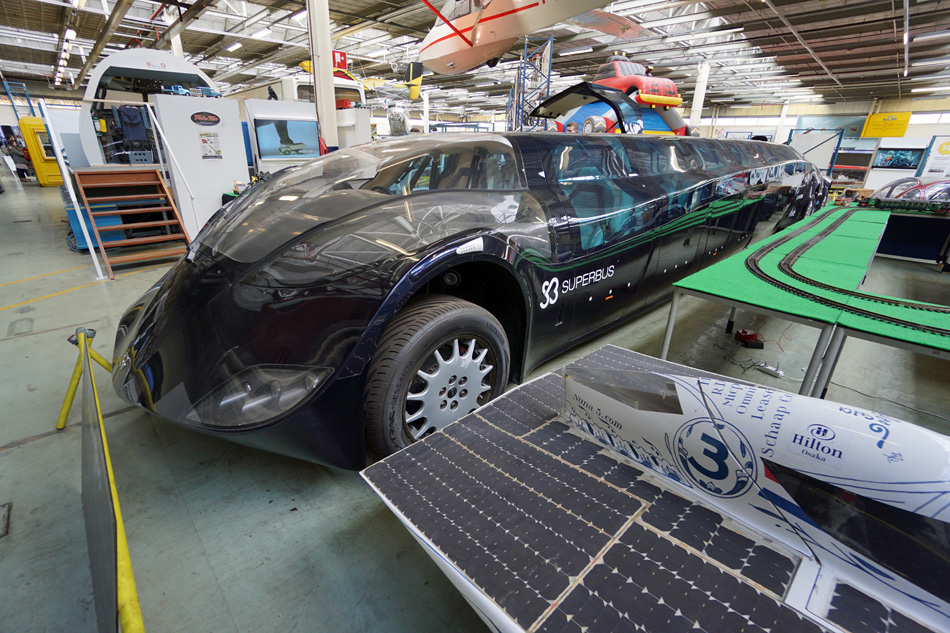 De Superbus van Wubbo Ockels, met een hoop subsidie gebouwd in 2010. De gedachte was om met dit soort bussen een verbinding te gaan onderhouden tussen Groningen en de Randstad. Over een speciale busbaan zouden ze met 250 km/uur gaan rijden. Dit als alternatief voor een spoorlijn: de Zuiderzeelijn. Maar op wat proefritten na heeft de bus nooit gereden. Ze kwam terecht in het Transportmuseum Lelystad, een museum dat nooit van de grond is gekomen, en uiteindelijk in het NTM.