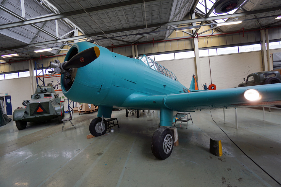 North American 27, een in 1936 door Fokker ontworpen jachtvliegtuig (bruikleen van het Oorlogsmuseum in Overloon). In het museum staat nog meer militair materieel.