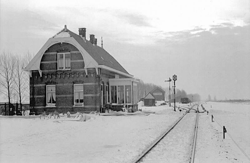Een nieuw station op de spoordijk werd in 1901 geopend. Foto: een blik op de openingsplechtigheid in 1901. Alle bobo’s uit het dorp zijn opgetrommeld, evenals het personeel en de kinderen van de stationschef. Loc SS 436 (NS 1436 bouwjaar 1892, uit dienst 1930-1939) is op bezoek.