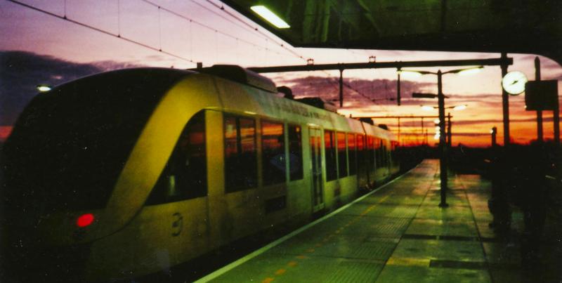 Gestimuleerd door het KAN (Stadsregio Arnhem – Nijmegen) werd een nieuw modern station op de spoordijk gerealiseerd. Het opende zijn deuren in 2011, 75 jaar nadat de laatste reizigerstrein hier stopte. Foto: J.W. Weiss, 11 december 2011. De eerste trein vanaf Arnhem arriveert op het nieuwe station Westervoort.