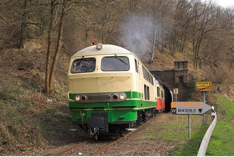 De eendagsklassieker van de SNE voert dit jaar op maandag 27 april naar de Brohltalbahn: een metersporige Privatbahn tussen Brohl aan de Rijn en Engeln in de Eifel met een lengte van 17,5 kilometer. Het vulkanische gebergte en de fraai gelegen lijn lokken in het weekeinde veel toeristen, maar op Koningsdag hebben we het rijk alleen en zal een GmP voor ons worden ingezet: een gemengde trein waarmee ook fotostops worden georganiseerd. Na afloop van de retourrit wordt per trein de haven bezocht en een rondleiding door de werkplaats in Brohl verzorgd. Op de baan komen de zojuist gereviseerde Mallet-stoomloc 11SM (Humboldt, 1906) en dieselloc D5 (Henschel, 1966). We zijn in Duitsland, dus Kaffee mit Kuchen en een kleiner Imbiß zijn inbegrepen.