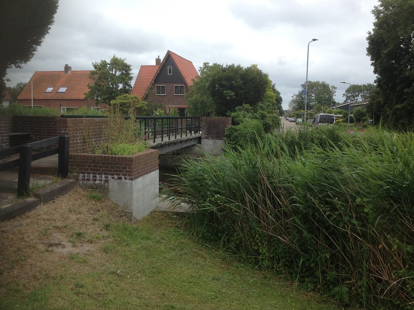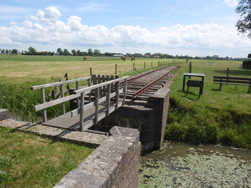 Schagerbrug waar de tram met een brug over de Groote Sloot werd geleid. De restanten staan nog op 13 juli 2019. Foto: Ronald Bokhove.