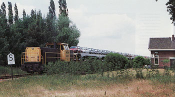 Trein 55008 Kijfhoek ”” Oosterhout Weststad passeert in juli 1995 wachterswoning 7 in Hooge Zwaluwe. Foto: Paul Henken
