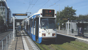 De toekomstige tramlijn 15 zou bij Station Zuid moeten beginnen op de Strawinskylaan, die mogelijk zal worden verlaagd tot maaiveldniveau om de overstap tussen trein en trams en bussen te verbeteren; september 2009.Foto: Frits van der Gragt.