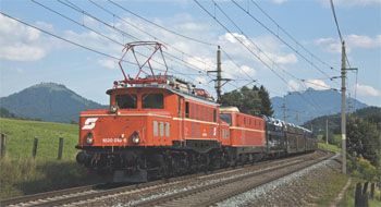 Museumloc 1020 018 van Eisenbahnklub Lienz samen ÖBB-loc 1044.040 in Fieberbrunn; 22 augustus 2008.Foto: Marc Voss.