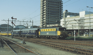 Elektrische locomotief 1127 komt na een inspectierit naar Zwolle met de koninklijke rijtuigen Sr 8 en Sr 9 terug in Utrecht; 14 mei 1992. Foto: Hans Scherpenhuizen.