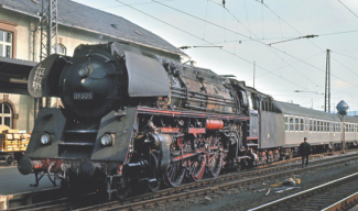 De DR in het Westen. Rekolok 01 505 met een Interzonenzug uit Erfurt aangekomen in Bebra; augustus 1967. Foto: Sjoerd Bekhof.
