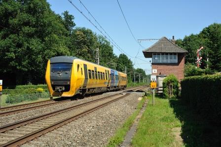 Het doek is gevallen voor de ‘Grensland Express’. Op 21 juli 2013 passeert DM ’90-treinstel 3436 als trein 20018 de voormalige blokpost Gildehaus op weg naar Hengelo. Foto: Bob Visser.