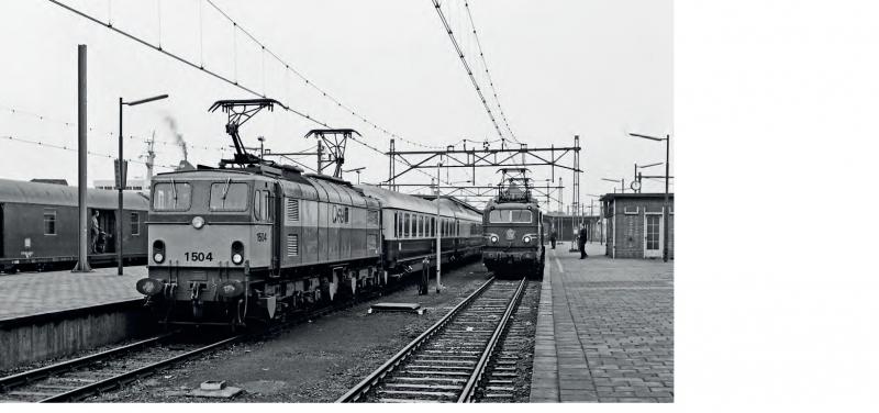 Station Hoek van Holland Haven op 28 mei 1971. NS 1504 vertrekt met TEE ‘Rheingold’, de 1312 zal korte tijd later met de Holland-Scandinavië Express volgen. Foto: Brian Stephenson