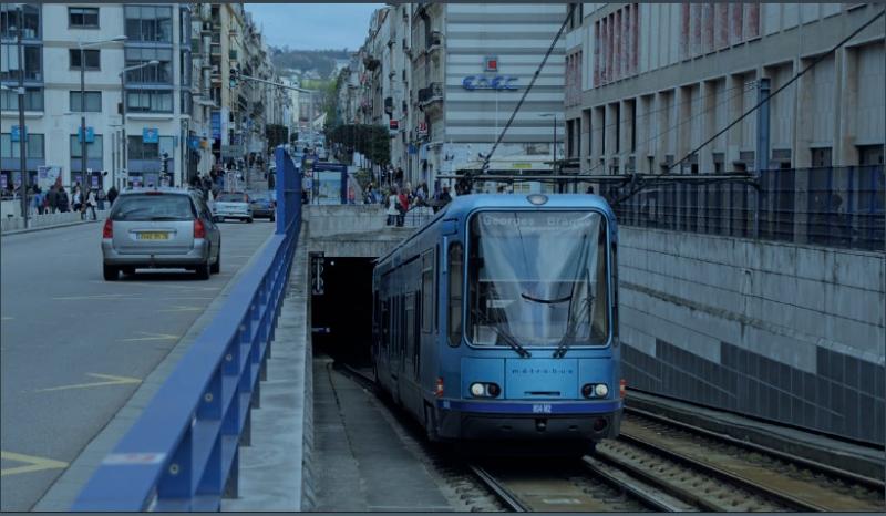 TSF2-tramstel 804 in Rouen verlaat de tunnel onder de binnenstad bij het Théâtre des Arts; 1 april 2011. Foto Arthur Staal.