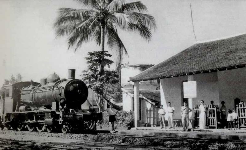 Een vredig tafereel in Loc Ninh, begin jaren veertig, maar niets is minder waar. Indochina is bezet door Japan. Franse kolonisten kijken naar de fotograaf terwijl één van de 2’C-locomotieven in afwachting is van wat komen gaat. Foto: verzameling Tim Doling.