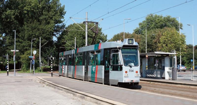 De zestien TramPluswagens van de serie 700 zijn nog recent in het zilvergrijs gespoten.Molenvliet, 4 september 2012. Foto: Bas Schenk.