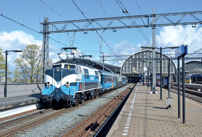 Een oude bekende op het Nederlandse spoor is locomotief 1251, die inmiddels in zijn zoveelste beschildering de trekkracht is van het Panorama Rail Restaurant. Amsterdam Centraal, 23 april 2016. Foto: Raymond Kiès.