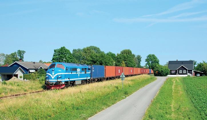MX 1042 van Tågkraft, gehuurd door CFL Cargo Sverige, met de Absolut Vodka-trein van Åhus naar Göteborg bij Kristianstad; 25 juni 2016. Foto: Gijs Kool.
