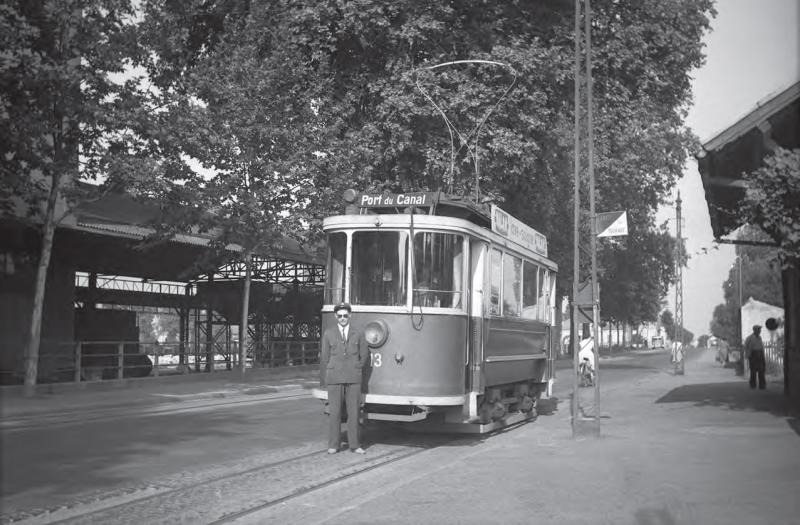 Het eindpunt Pont du Canal van de stadslijn in Colmar met motorrijtuig 13 op 16 augustus 1955. Foto: Maurits van Witsen.