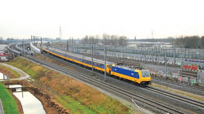 Een Intercity direct Amsterdam – Breda, gereden door Traxx E186 109 met een ingekorte stam voor de dienst Den Haag – Eindhoven, op de fly-over naar de HSL bij Rotterdam Lombardijen; 28 december 2015.Foto: René de Boon.