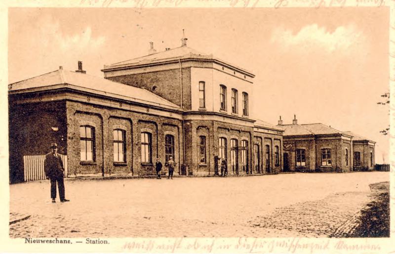 Station Nieuweschans, jaartal onbekend. Ansichtkaart, Uitgever Joh. G. Verver, Nieuweschans (verzameling Thomas Feldmann).